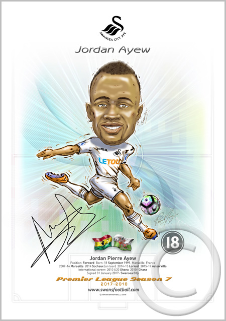 18 Jordan Ayew Jordan Pierre Ayew Position: Forward Born: 11 September 1991, Marseille, France 2009-14 Marseille 2014 Sochaux (on loan) 2014-15 Lorient 2015-17 Aston Villa International career: 2010 U20 Ghana 2010- Ghana Signed 31 January 2017- Swansea City Quantity £7.50
