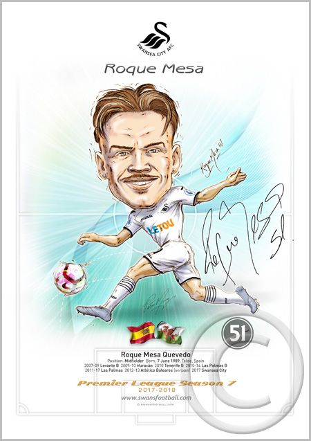 51 Roque Mesa Roque Mesa Quevedo Position: Midfielder Born: 7 June 1989, Telde, Spain 2007-09 Levante B 2009-10 Huracán 2010 Tenerife B 2010-14 Las Palmas B 2011-17 Las Palmas 2012-13 Atlético Baleares (on loan) 2017 Swansea City Quantity £7.50