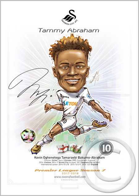 10 Tammy Abraham Kevin Oghenetega Tamaraebi Bakumo-Abraham Position: Striker Born: 2 October 1997, Camberwell, England 2016- Chelsea 2016-17 Bristol City (on loan) 2017 Swansea City (on loan) International career: 2014-15 U18 2015-16 U19 2016- U21 England Quantity £7.50